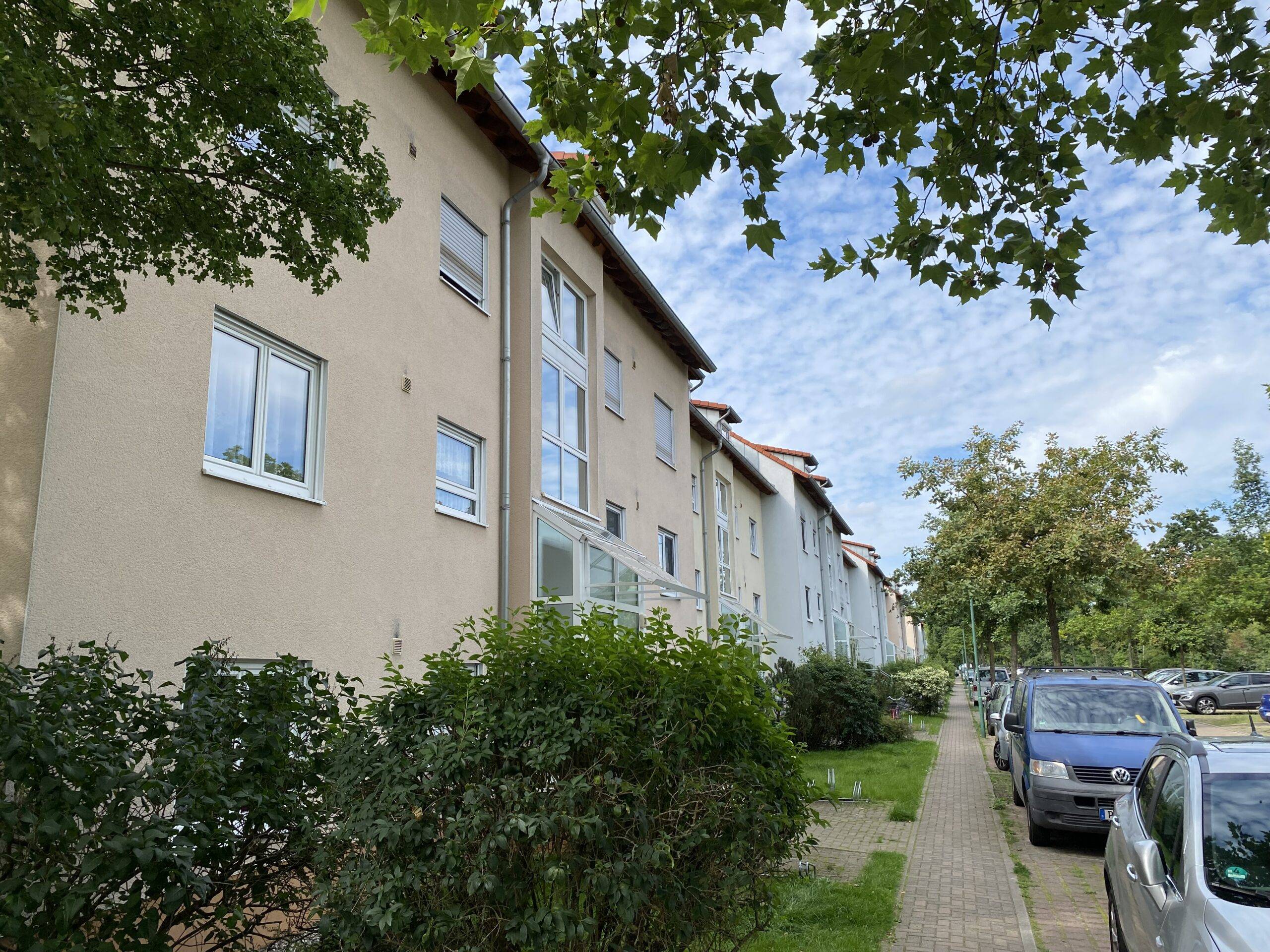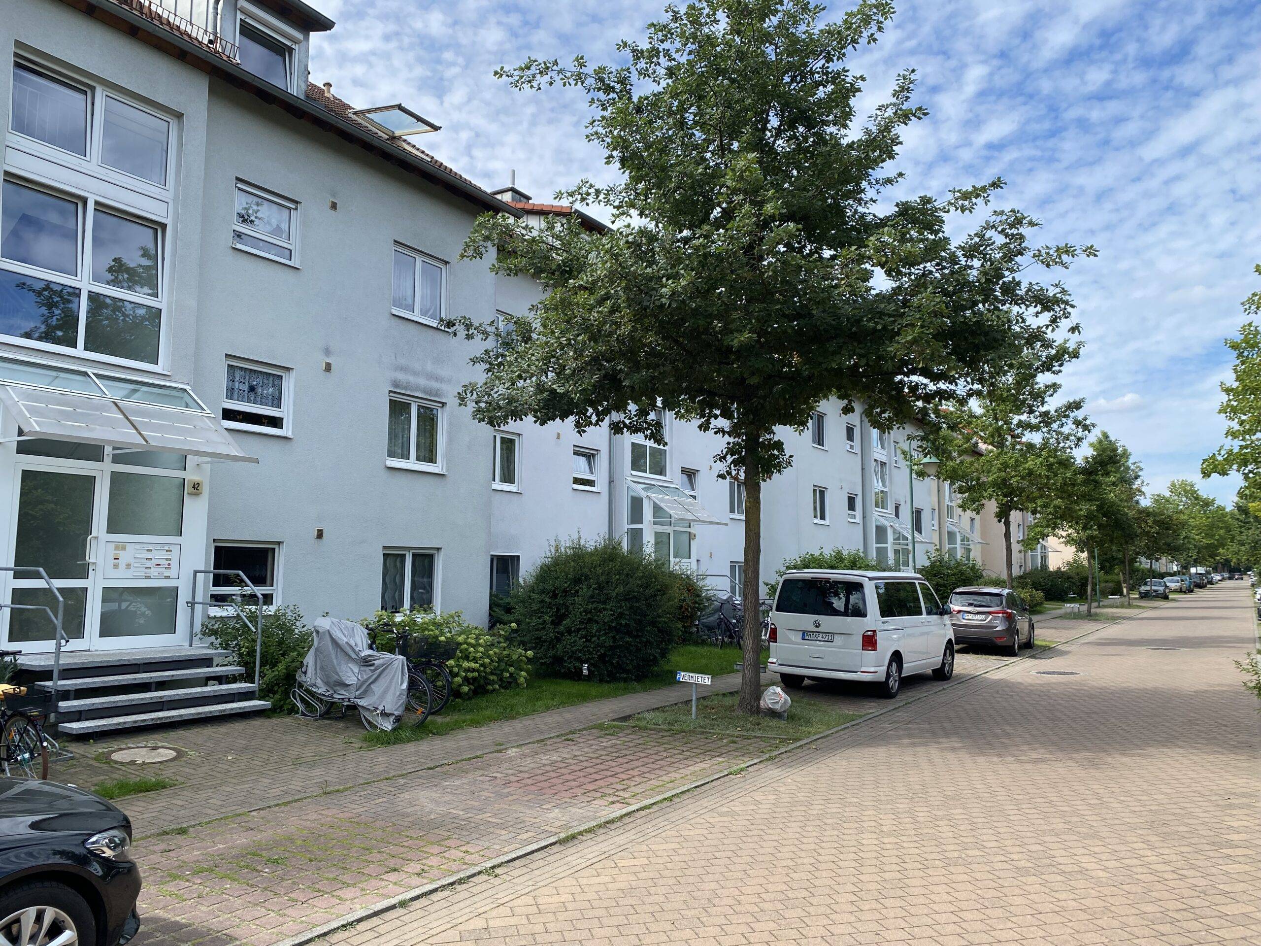 Die Wohneinheiten liegen an einer verkehrsberuhigten Seitenstraße mit Stellplätzen und grenzen an eine Reihenhaussiedlung. Verschiedene Einkaufsmöglichkeiten sowie ein nahegelegener Autobahnanschluss begünstigen das Wohnumfeld.