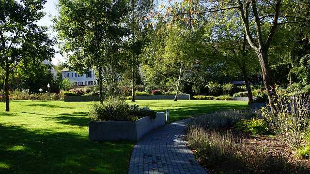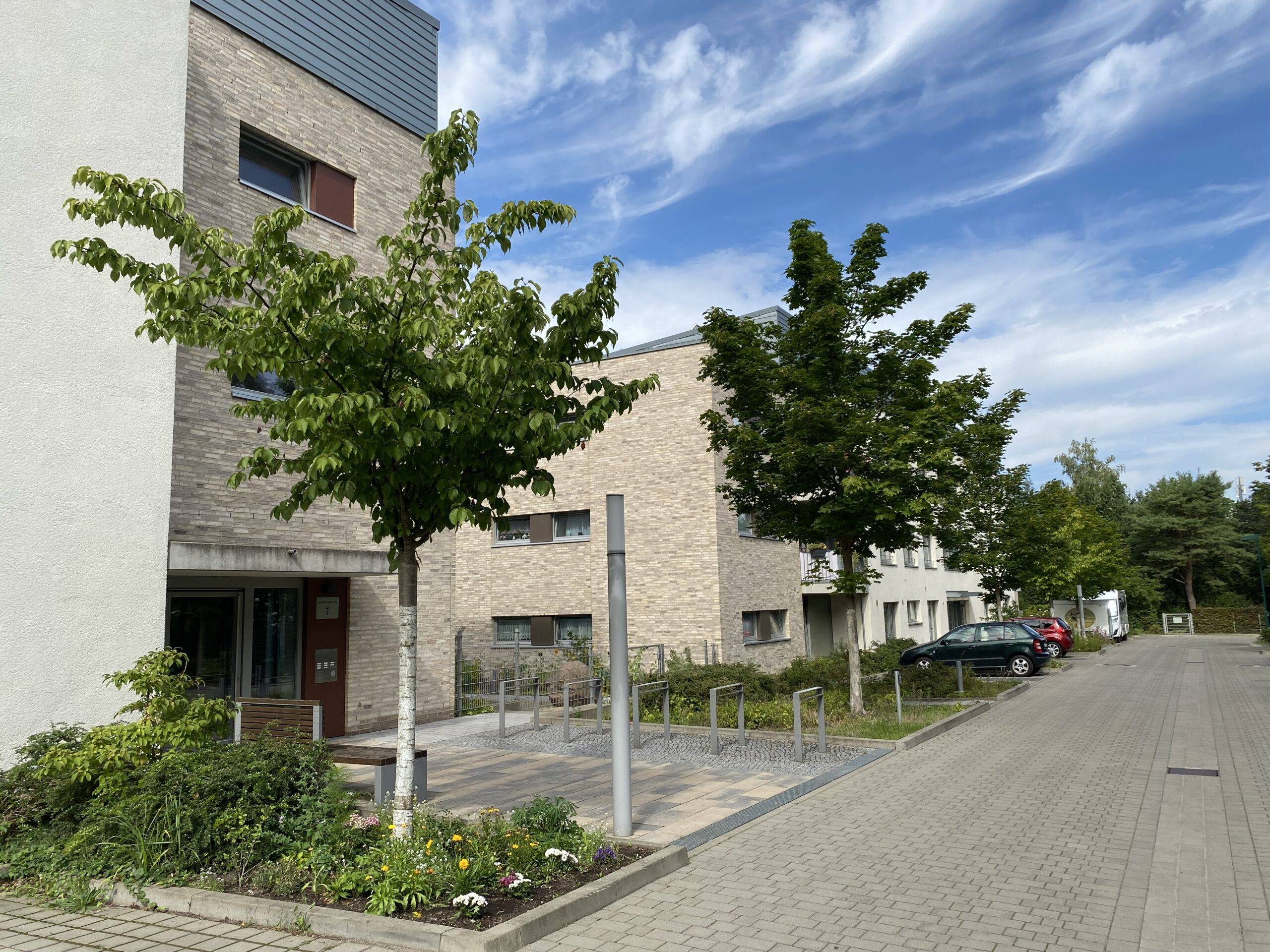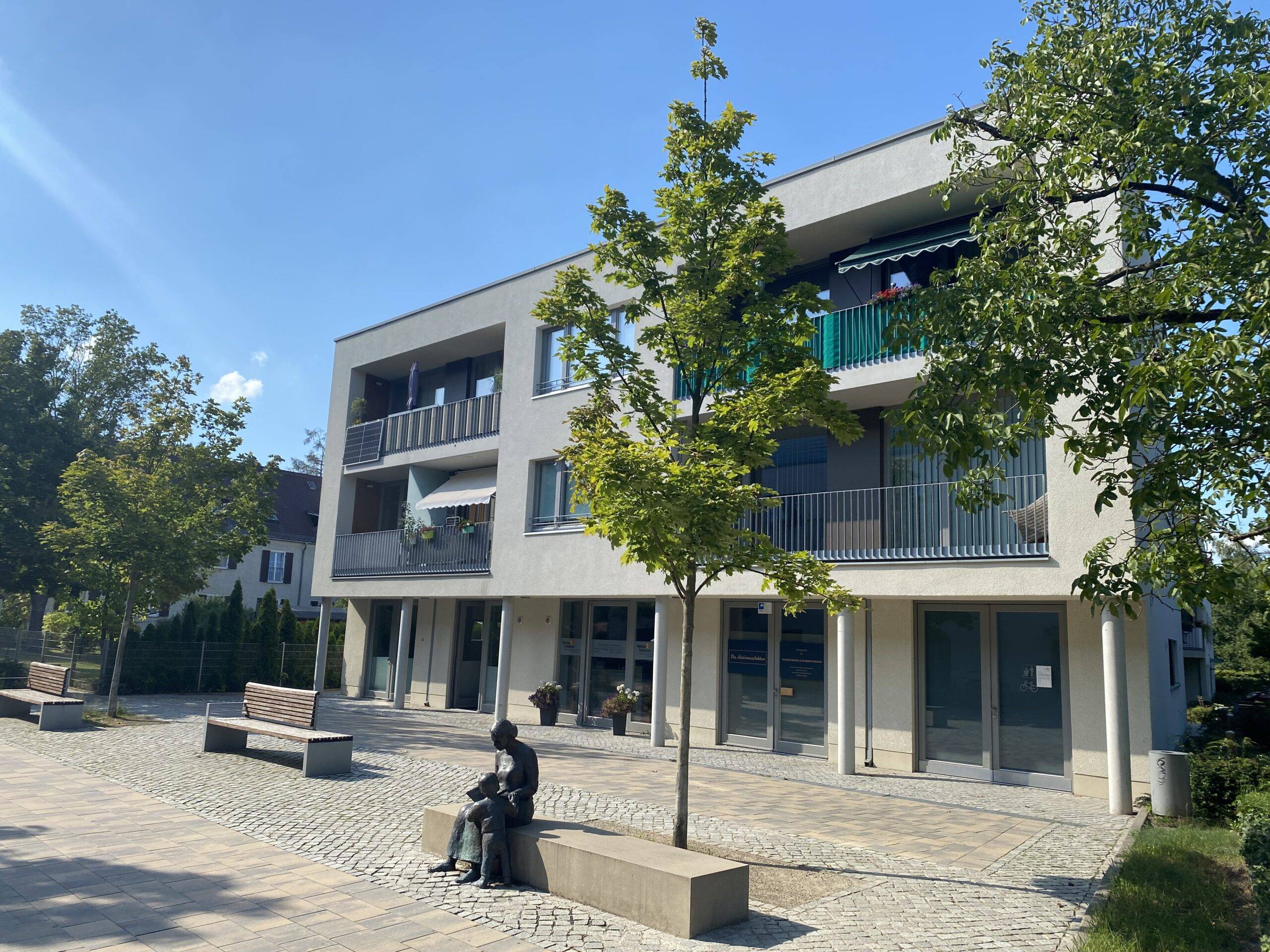 Die lange Planungszeit hat sich gelohnt. Das Wohnensemble bietet seinen Mietern nicht nur komfortable Wohnungen mit einem angrenzenden Park, sondern auch künstlerische Ausblicke. Die bekannte Kleinmachnower Künstlerin Emma Maria Lange, die für die DEFA die Puppen des Sandmanns, Pittiplatsch und Frau Elster erfand, schuf die Bronzefigur „Die Lesenden“ für die Wohnanlage. Mit der Darstellung einer Frau, die einem Kind aus einem Buch vorliest, hat sie eine Verbindung zu den Dichtern geschaffen, die den Straßen in diesem Wohngebiet ihre Namen gaben.